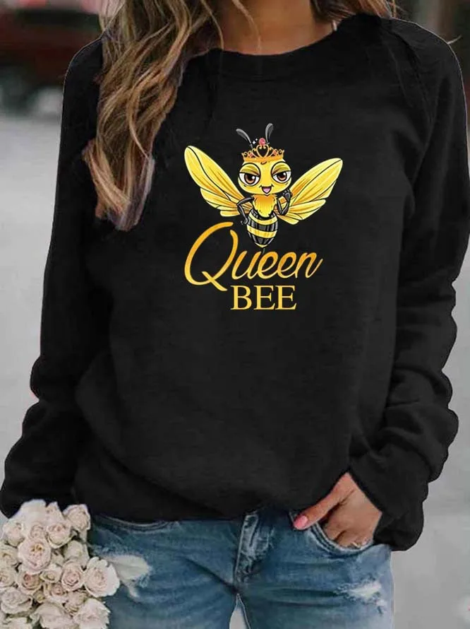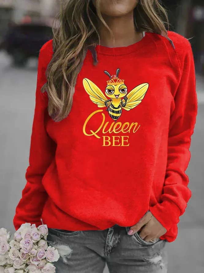 Bee Print Crew-neck Hoodie for Women Sweatshirt Sweatshirts Hoodies Streetwear Women Clothes Harajuku