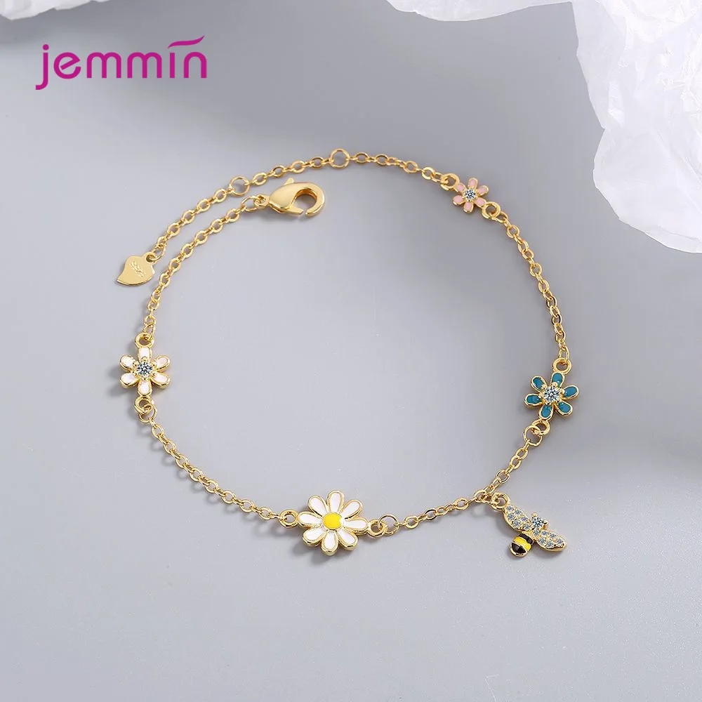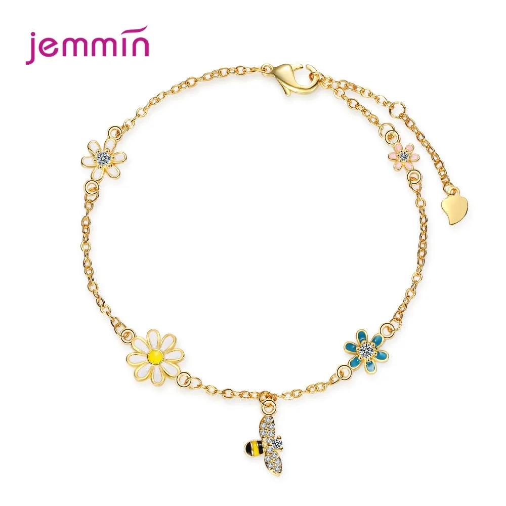 Colorful Pendant Bracelet Genuine 925 Sterling Silver Bee Flower Bracelet For Women Girls Wedding Party Jewelry Accessories